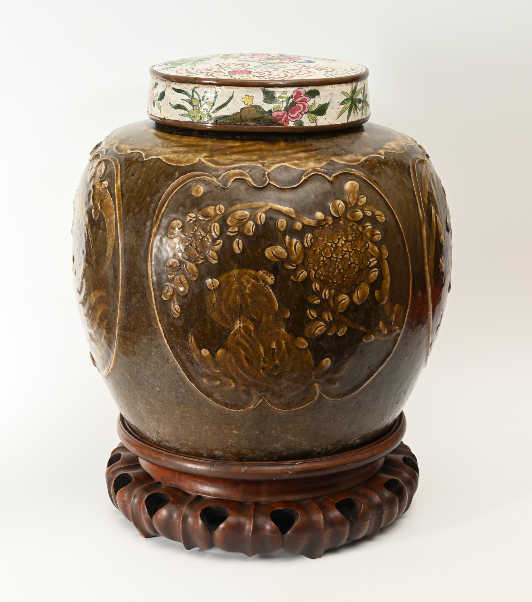 A large Chinese brown-glazed vase