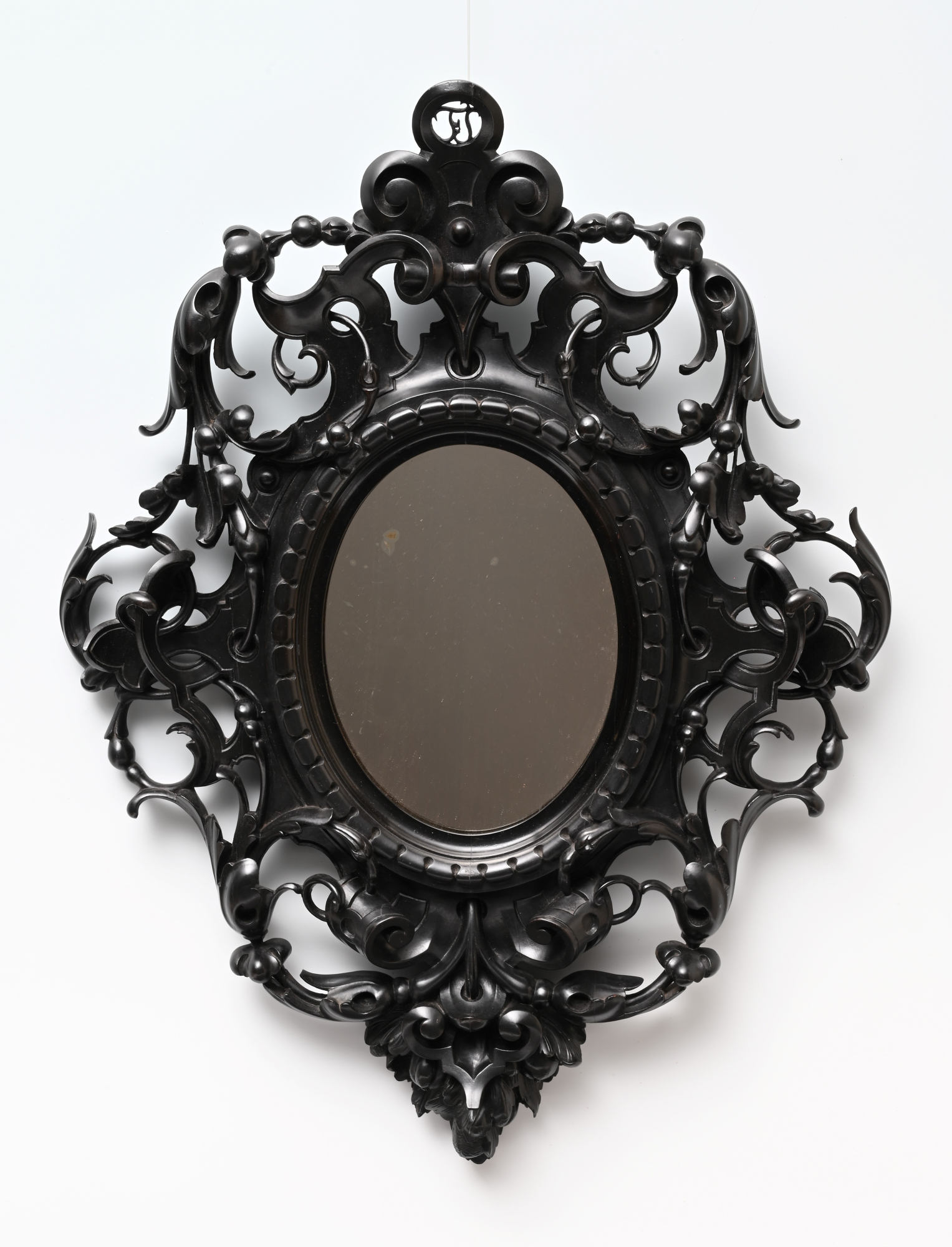 The combination of craftsmanship and ebony makes this mirror a rare piece.