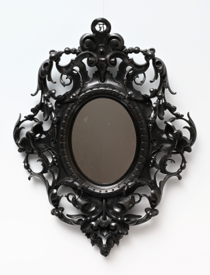 An extremely beautiful and finely carved mirror made from a single piece of solid ebony.
