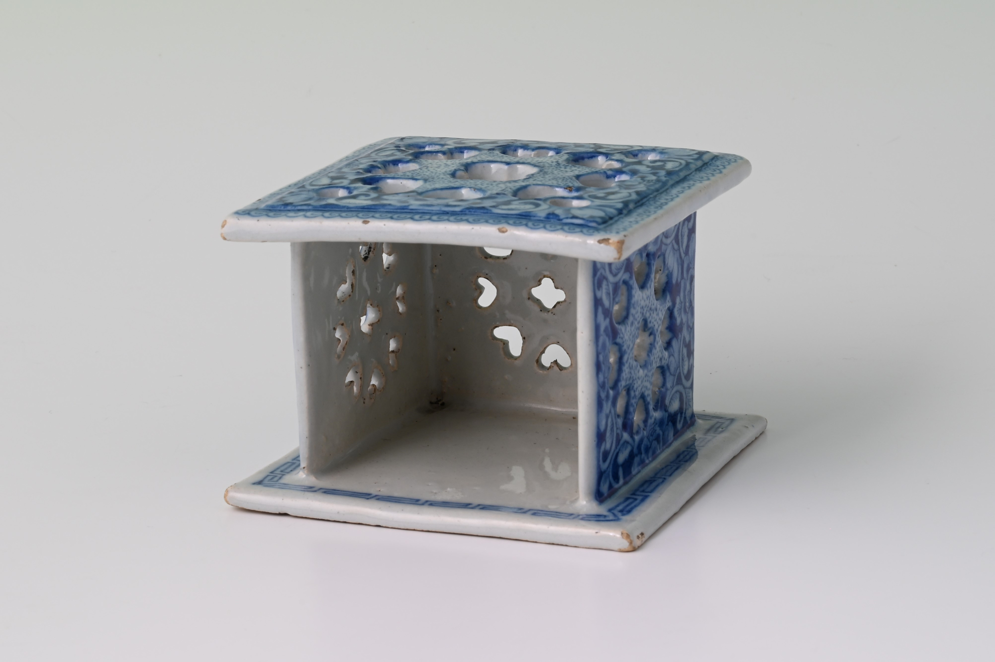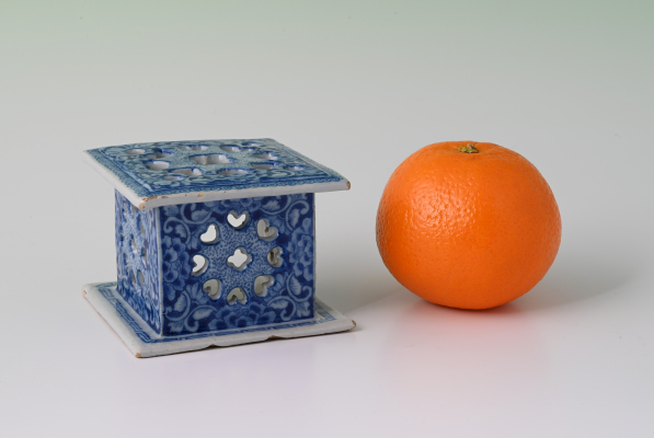 Een Delfts aardewerk miniatuur voetstoofje