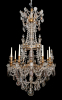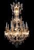 De kristallen kroonluchter is rijkelijk versierd met vierentwintig lampjes en acht kaarsenhouders.